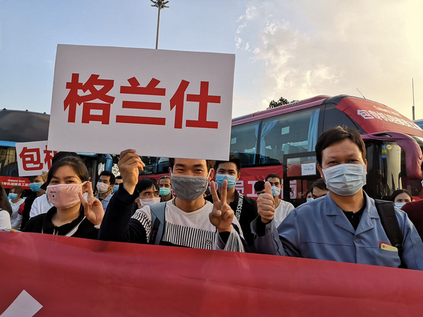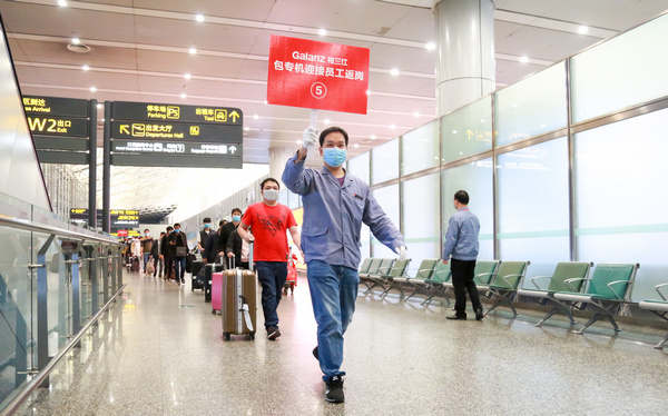 見圳客戶端·深圳新聞網(wǎng)2020年2月26日訊 2月25日下午,格蘭仕第二班“復工專機”在廣州白云國際機場平穩(wěn)降落,一百三十多名來自廣西各地的格蘭仕員工下了飛機第一件事,就是換上工作服,然后再搭乘企業(yè)安排的免費專車,回到了格蘭仕順德總部。據(jù)了解,2月21日,首趟“格蘭仕復工專機”已經(jīng)接回了一百三十多名生產(chǎn)技術(shù)人員。