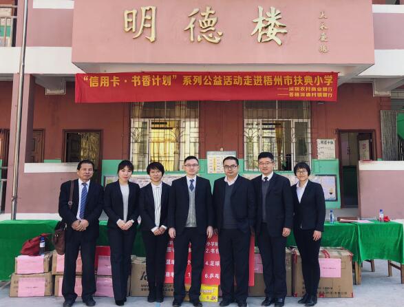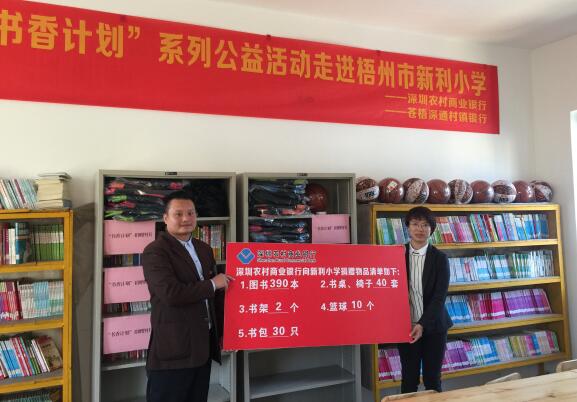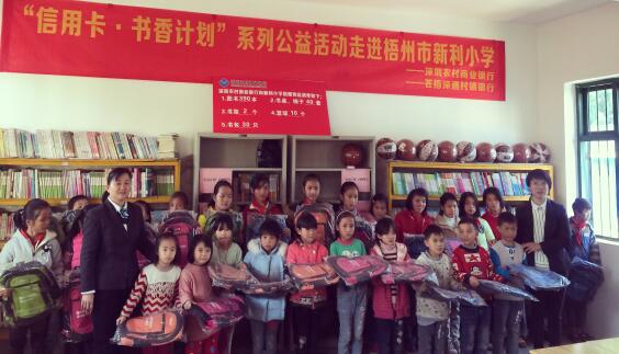 2017年,由深圳農(nóng)商行發(fā)起的“信用卡公益計(jì)劃·書(shū)香圖書(shū)室”捐贈(zèng)活動(dòng),深入走進(jìn)廣西壯族自治區(qū)的偏遠(yuǎn)山區(qū),為當(dāng)?shù)剌^為貧困的扶典小學(xué)、新利小學(xué)、林旺小學(xué)和育才小學(xué)帶來(lái)溫暖和鼓勵(lì)。本次活動(dòng)共捐贈(zèng)各類(lèi)圖書(shū)1899冊(cè)、文體用品130套、書(shū)包590個(gè)、書(shū)桌書(shū)架椅子42套,有效地幫助這四所小學(xué)建設(shè)充實(shí)圖書(shū)室,為孩子們創(chuàng)造良好的閱讀環(huán)境,讓更多孩子在閱讀中滋養(yǎng)向上生長(zhǎng)的力量。