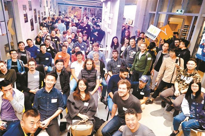 ▲2018年12月,硅谷著名創(chuàng)業(yè)孵化器Y Combinator成員到訪柴火創(chuàng)客空間,潘昊(前排左一)在柴火創(chuàng)客空間發(fā)起社區(qū)分享活動。