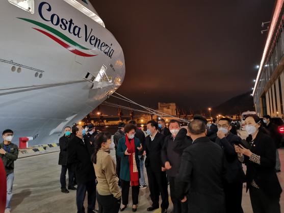 為確保1.26清晨電視電話會(huì)議順利召開,郵輪母港工程師連夜趕回公司調(diào)試設(shè)備;港口值班經(jīng)理尹犇接到海關(guān)急需手持式體溫測(cè)量?jī)x的消息后,凌晨2點(diǎn)騎自行車前往公司將三臺(tái)手持式體溫測(cè)量?jī)x交接到海關(guān)人員手中,為海關(guān)排查歌詩達(dá)威尼斯號(hào)郵輪旅客體溫做好保障工作,深夜疫情下的街道顯得格外冷情。