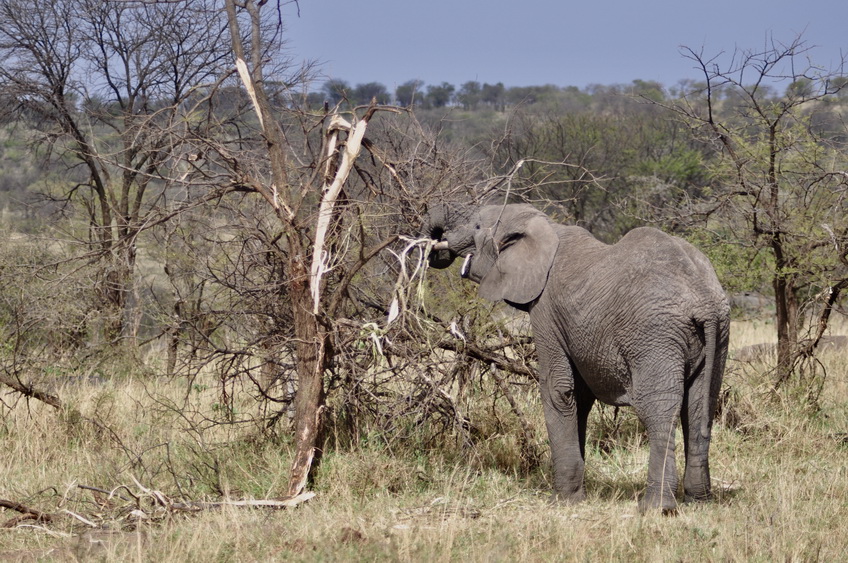 正在進(jìn)食的大象。