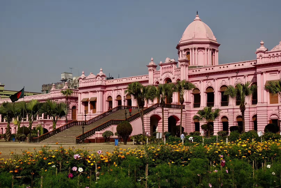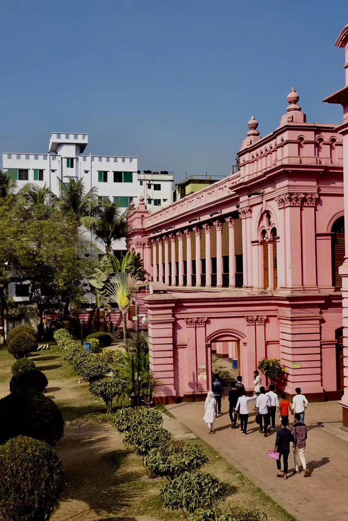 距孟加拉恒河渡口不遠(yuǎn)的地方有一座粉紅色宮殿式的豪華建筑。那是1872年一位名叫阿赫桑曼濟(jì)勒的地主在法國人留下的倉房基礎(chǔ)上改建的私邸,后來曾在一次龍卷風(fēng)襲擊時(shí)受創(chuàng)。李仁奇 攝