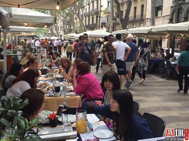 這條街連接著老城區(qū)加泰羅尼亞廣場(chǎng)和哥倫布紀(jì)念碑廣場(chǎng)兩個(gè)主要景點(diǎn),每天游人如織。圖為蘭布瑯花街。李仁奇 攝
