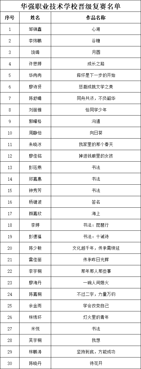 自2021年1月,活動征稿啟動以來,獲得了深圳市廣大中小學生、教師、文學愛好者的熱烈響應積極參與,吸引了深圳百余所學校的上萬人關注報名?,F公布福田區(qū)華強職業(yè)技術學校專場晉級復賽名單如下: