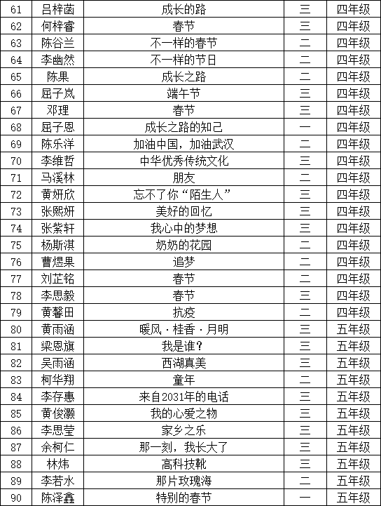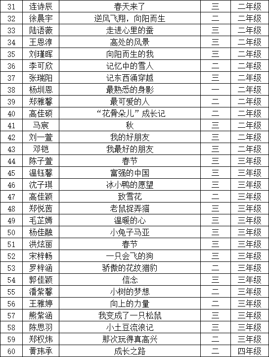 自2021年1月,活動征稿啟動以來,獲得了深圳市廣大中小學(xué)生、教師、文學(xué)愛好者的熱烈響應(yīng)積極參與,吸引了深圳百余所學(xué)校的上萬人關(guān)注報名?,F(xiàn)公布寶安區(qū)翻身實驗學(xué)校(東校區(qū))晉級復(fù)賽名單如下: