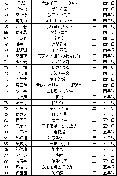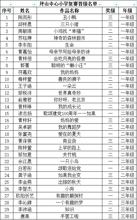 自2021年1月,活動征稿啟動以來,獲得了深圳市廣大中小學(xué)生、教師、文學(xué)愛好者的熱烈響應(yīng)積極參與,吸引了深圳百余所學(xué)校的上萬人關(guān)注報名?,F(xiàn)公布坪山區(qū)坪山中心小學(xué)晉級復(fù)賽名單如下:
