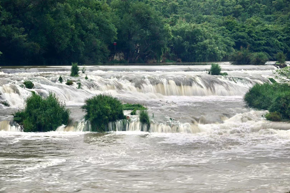 水大時(shí),瀑布濺珠飛灑到100多米高的黃果樹街上,兩三里外能聽到雷鳴般的響聲。李仁奇 攝