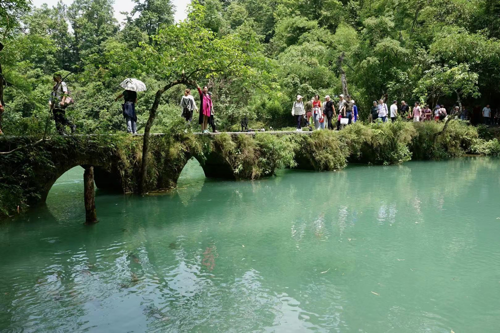 小七孔得名于響水河上一座青石砌成的七孔拱橋,為道光十五年所建。這座古橋與獨(dú)特的68級(jí)瀑布使得景區(qū)聲名遠(yuǎn)播,每年吸引近百萬(wàn)中外游客前來(lái)旅游。李仁奇 攝