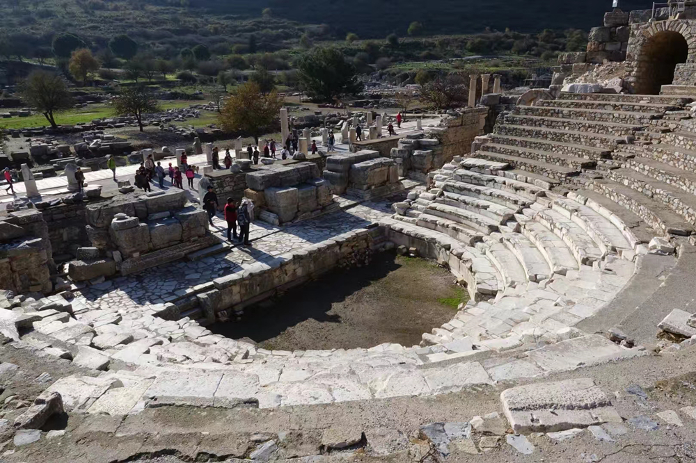 在以弗所古城遺址可以看到用大理石修建的街道、商店、市集、圖書館、柱廊大街、哈德良神殿、劇場、浴場、妓院等遺跡。走進(jìn)古城猶如穿過時光隧道,可以遙想2900多年前這座城市的繁盛情景。李仁奇 攝