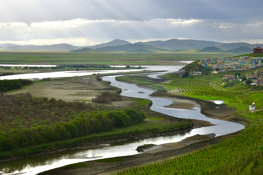 蜿蜒曲折的黃河及其支流白河將寬廣平坦的若爾蓋草原核心地帶分割成無數(shù)河州、小島,形成遼闊的高原濕地、候鳥天堂,被中外科學(xué)家譽(yù)為“宇宙中的莊嚴(yán)幻影”。李仁奇 攝