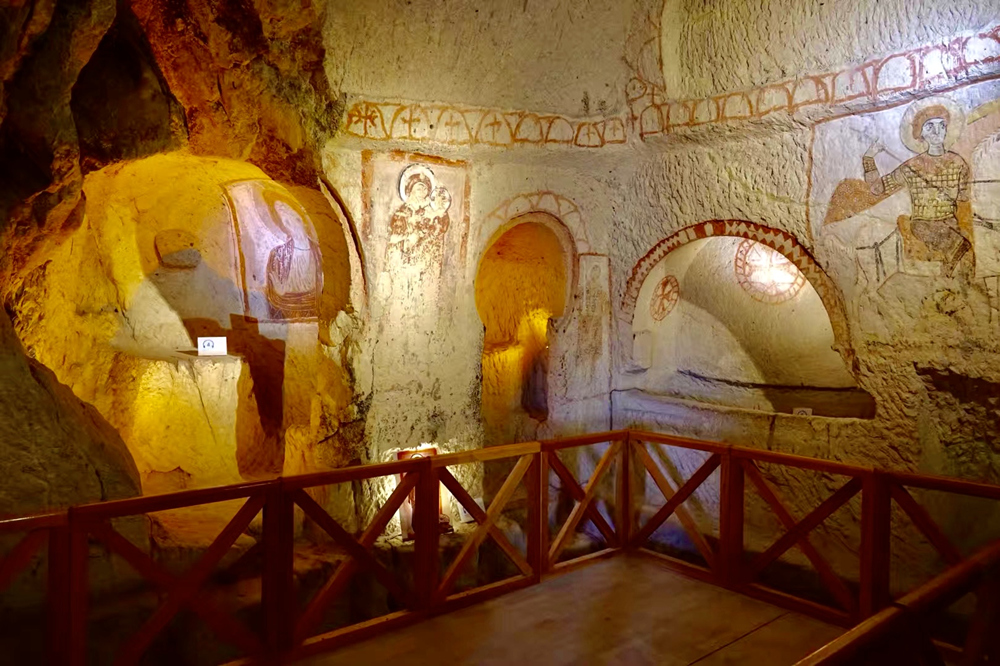 壁畫一般是《圣經(jīng)》中的人物畫像,一部分仍色彩鮮明,清晰可見。李仁奇 攝