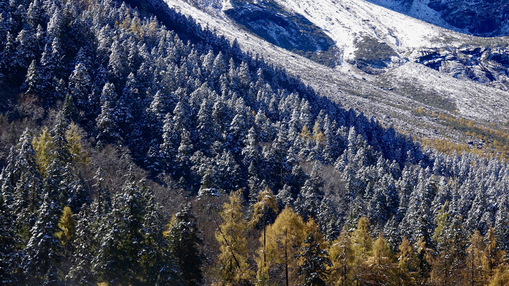 畢棚溝集原生態(tài)景觀博覽、登山穿越、極地探險(xiǎn)、滑雪滑冰、休閑度假于一體,以其優(yōu)美的自然風(fēng)光、完美的自然生態(tài)景觀、優(yōu)良的生態(tài)環(huán)境著稱(chēng)。李仁奇 攝