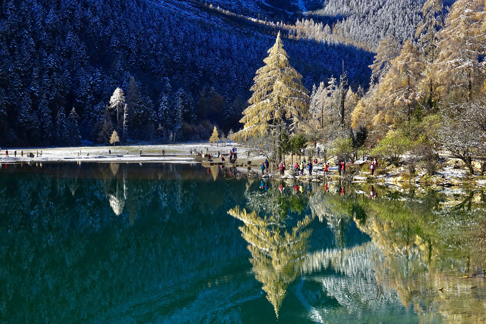 畢棚溝的湖泊倒影就是一個鏡像世界。李仁奇 攝