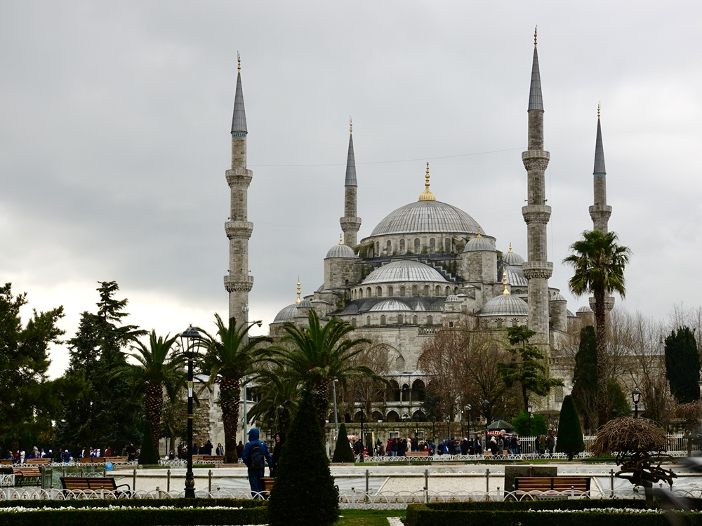公元1453年,奧斯曼土耳其蘇丹下令將將君士坦丁堡改名為伊斯坦布爾,將索菲亞大教堂改成阿雅索菲亞清真寺,并將教堂內(nèi)所有拜占庭的壁畫(huà)全部用灰漿遮蓋住,所有基督教雕像也被搬出,還在周?chē)藿?個(gè)高大的宣禮塔。李仁奇 攝