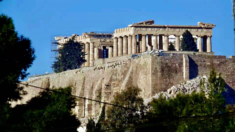 雅典衛(wèi)城中的帕特農(nóng)神廟,又名雅典娜神廟,是專門供奉雅典娜女神的神殿。距今2000多年的歷史,如今廟頂坍塌,雕像蕩然無存,浮雕剝蝕嚴重,但從屹立的廊柱中依然可見當年的風(fēng)姿。李仁奇 攝