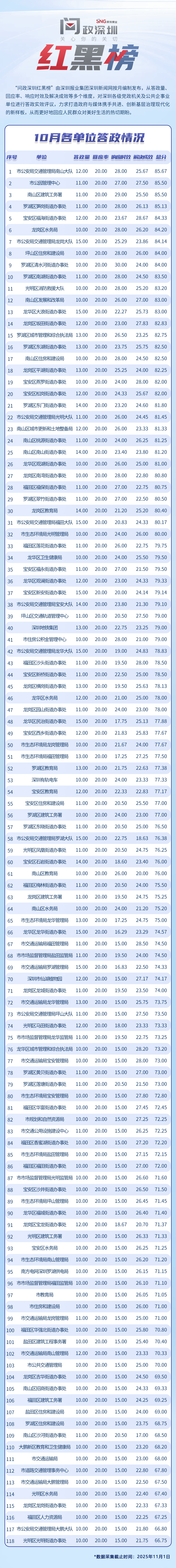 “問政深圳紅黑榜”具有科學、合理、完備的綜合評價體系,能夠綜合評估深圳各級黨政機關和公共企事業(yè)單位的答政情況。